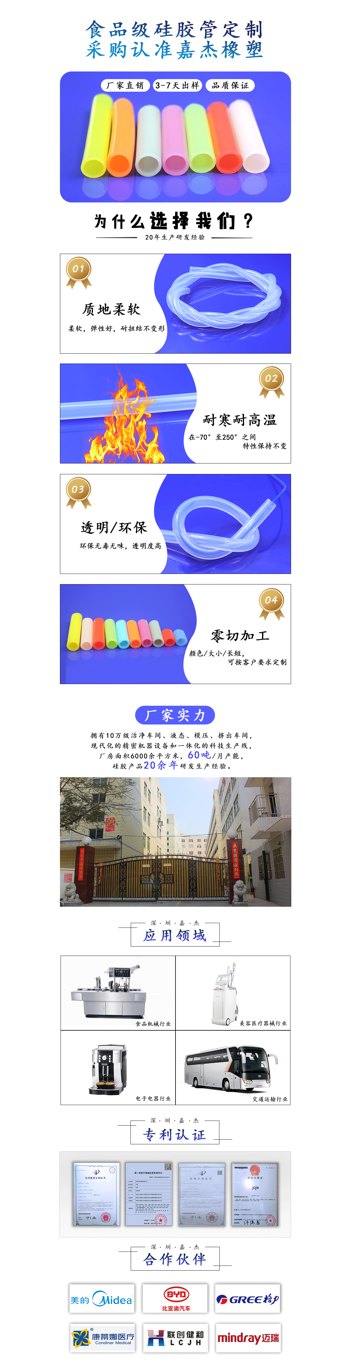 醫(yī)用無刺激食品級硅膠管廣泛用于食品加工、家用電器、冰柜、醫(yī)療設(shè)備、化工實驗、分析儀器、生物制藥、