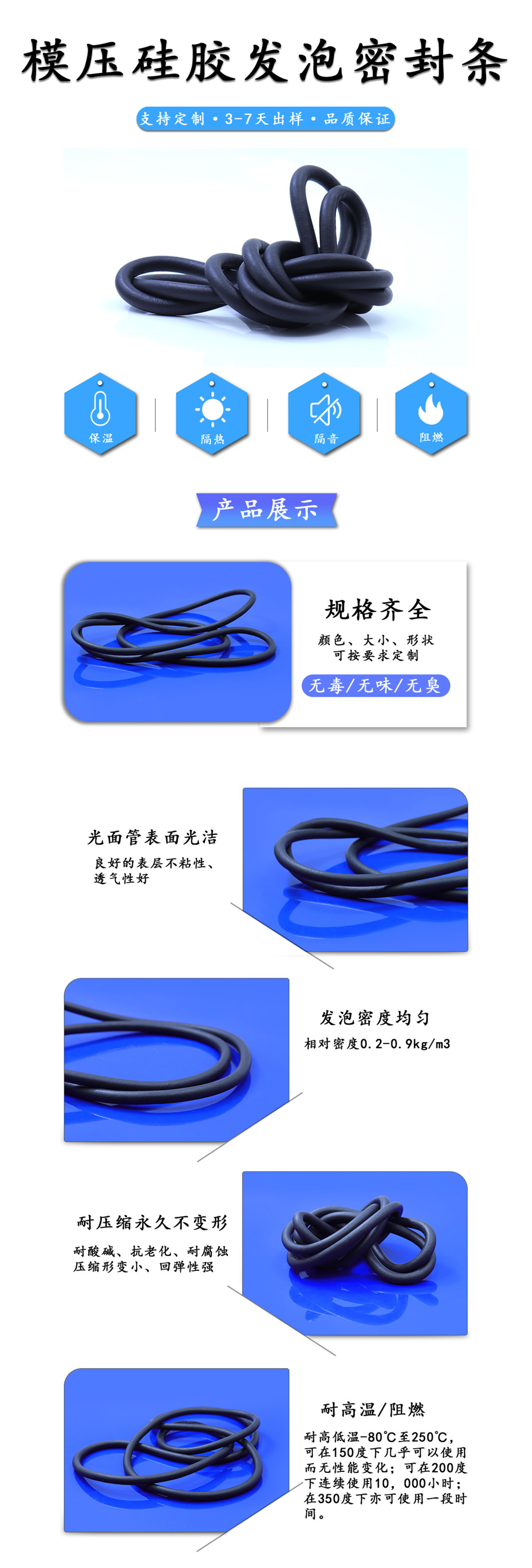 硅膠發泡密封條性能: